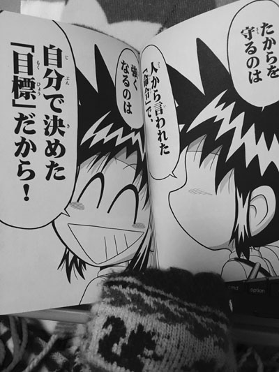 27 November みみみ、強くなる。 まーの敗北の仕方と作中の悪についてみていく予定だったけれど、そこで書こうとすることに言及するには、先に確認が必要なことがあると判断してそれについて書く。 みみみは「強くなる」という目標をもって自分より強い相手と戦い、勝利してきた。その強さは主人公を降板させられるほど桁違いのものになってしまった。 ところで、この物語で言う「強い」とはなんだ。 2巻「技風むむとわざぼー」 むむは語る。 戦士の強さは目の輝きだ/その目を閉じないかぎり /アイツ(注:みみみ)は絶対に死なないんだ!! ――(同上)なるほど。これだけ抜き出したってよくわからないので、具体的なことは作品を見ながら確認していきたい。 * * *先に結論から言ってしまうのは手順としてどうかと思うけれど、 おそらく、 「強い」というのは、何があっても、どんな意見でも貫き通すためのアイデア(技)を思いつき、勝負の結果に関係なく自分の主張を続けられること、とみている。 まー、むむ、めんめんは我が強い。「オレのため」、「オレ自身」、「おねがいボクのかわりに」といって積極的に行動し、主張が一方的な押しつけっぽいことがある。 一方、みみみは受け身で考えてから、共感したり、共感できなかったりの態度を示して意見する。 こうしたみみみの強さとは、どんなものか、その強さは何をなしたか、何のために使いたかったか、ということについて今回は見ていきたい。● 受け身のみみみの目の輝きみみみはあとから考える人だ。理不尽に強制される困難に対してカウンター的に考える位置に設定されている。 村長の命令により敵を待ち受ける<たからの番人>であり、みみみ自身がたからから離れて敵へ攻め入ることは原則的に許されていない。また、戦闘中思考停止に陥りそうになってもわざぼーに促されて思案を巡らすシーンが度々あるように、みみみは考えることを止めてもいけない。あくまで受け身の立場で、直面したその時々についてを柔軟に考え、対応しつづけなくてはならないのである。 これはみみみの戦士としての目を見開かせるための状況設定でもある。受け身で理不尽に強制される困難を迎え撃つというのは、安全ではないピンチな状態だ。その中で考え出されるアイデアこそが「希望の光」なのだ。(1巻「空からの訪問者とわざぼー」) 理不尽な困難を強いられることは「命令」という言葉でも言われている。それはわざ武王の配下で活動していたむむにも課せられていたものだ。ただし、彼は自主的な行動をするという判断に対する制限を意に介さない。 今までの敵はたぶん「命令」で戦ってると思うけど/ 技風むむ(ルビ:アイツ)は「目標」で戦ってるんだと思う ――(2巻「負けた理由とわざぼー」) とみみみが感じたように、命令にただ従っているのではない。また、命令に失敗してわざ武王から制裁を加えられるが、黙ってやられたりはしない。むむは「目標」のためなら平気で「命令」を逸脱しようとする。むむとみみみの違いは、「目標」のために、命令に歯向い能動的に行動するか、命令の範囲内で受け身で行動するかだ。 みみみはむむのような自由行動はしない。復讐のため敵地へ潜入するめんめん、あるいは野望のため怪物を復活させようとするまーのように積極的に他に向けて行動することもない。むむの救出はギリギリ能動的な逸脱行動と言えそうだが、抑止力である他者(わざぼー)の許可によって可能になる。みみみの行動は制限が前提としてある。制限によって強いられた受け身の範囲での行動なのである。そのなかで「目標」に向かっていく。 2巻「負けた理由とわざぼー」 このように、徹底的に受け身というピンチであり続け、そこで発揮される柔軟さこそがみみみの「強さ」として描かれている。 ● 経験的に学ぶみみみみみみは受け身であり、わざぼーのアドバイスを聞いたり、相手をよく観察している。見たり聞いたりして得た情報について、敵の弱点を突くアイデア(技)に結びつけるほか、他者からのアイデアの借用、つまり、みみみは他者からの影響をうけてそのアイデアを自身の戦いのなかで役立てることもある。 影響を受けると言っても主に技風むむだが。 再三の対決でむむが提示する技を繰り返したことにはじまり、彼の指摘によってみみみは戦闘中意識的に目を開けるようになった。(2巻) わざ武王のアジトに潜入したときはマジックルに苦戦するが、むむがどんな状況でも常に笑顔でいた意味を考えてアイデアに結びつけて勝利。その後、共闘してわざ武王を倒そうとしたときもむむの作戦に従った。(2巻〜3巻) みみみが落ちこんで戦いをやめると言ったときには、彼に励まされて気持ちを整理し元気を取り戻した。(4巻) 「疾風衝撃波」は2回目の対決(2巻)のときにむむが提示した技だが、当時みみみが繰り返し、また、暗黒ま城でレイトーンとの戦いにおいても彼女はこの技を使っている。(5巻) むむの影響を受けた描写が